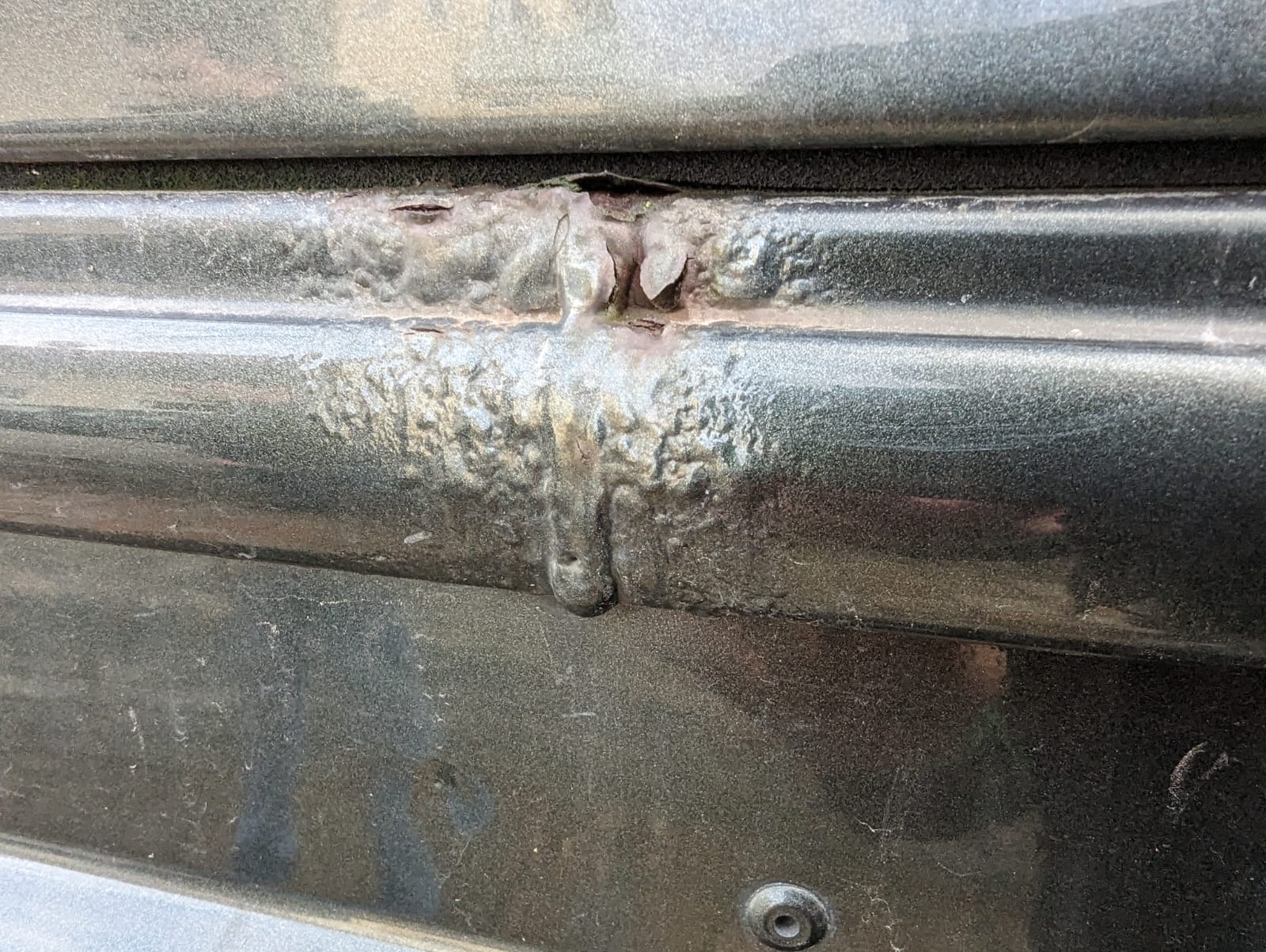 Die Schnellreparatur wäre: alles über und unter der Roststelle abkleben, mechanisch entrosten, mit Epoxy versiegeln, lackieren.
