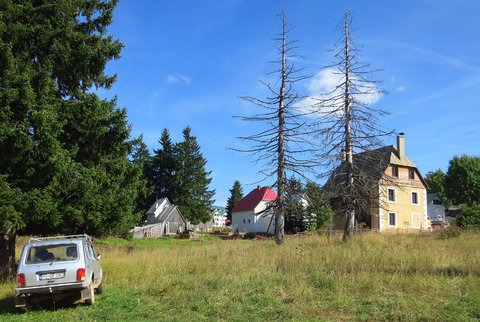 Heute fahren wir in fast 2 Stunden (!) die ca. 70 km nach Zabljak ab Rande des Durmitor Nationalparks. Ein Nest in deutlich über 1000 m Höhe in Sichtweite der 2000er-Durmitorgipfel. Vielleicht nicht wirklich schön das Örtchen. Und die Ferienhäuschen wuchern inzwischen auch. Aber insgesamt hat es irgendwie Charme. Und Nivas (ich hab ja auch noch einen) gibt es hier in Mengen.