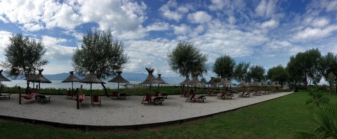 Der Campingplatz dort ist mega groß und furchtbar. Eine Yoghurtdosen-Superferienwelt. Alles schön durchorganisiert. Schlimm. Aber gut, für uns ist es ja nur Zwischenstopp nach (zu) langer Fahrt. An sich wäre der Platz unter hohen Pinien schön.