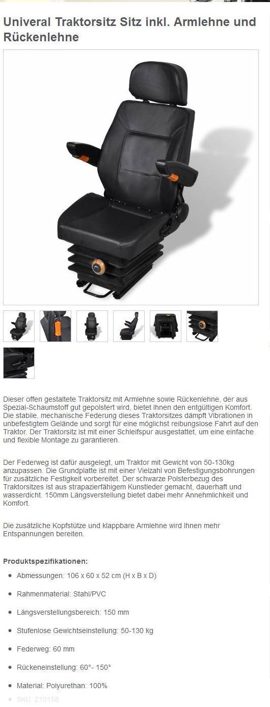 Der Sitz hat maximal J 386 für Bagger und Traktoren.