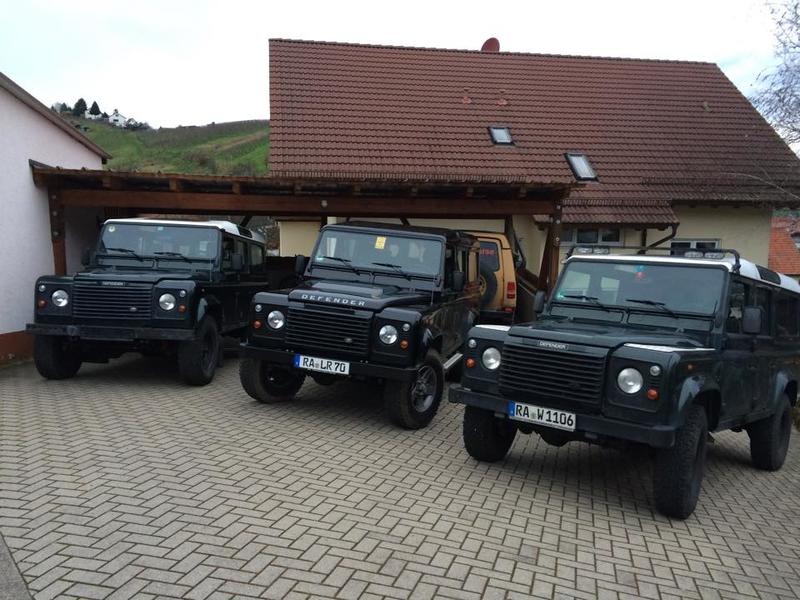Zu Hause dann das Empfangskomitee mit ein paar Freunden und 3 Motorengenerationen Defender 110.