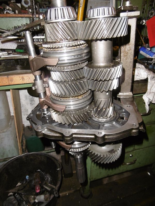 Auch hier wurden die Geräusche im 5. Gang durch Auflösungserscheinungen des Zylinderrollenlagers der Vorgelegewelle verursacht. Beim Abnehmen der Gehäuseverlängerung fielen die Rollen in das Vorgelegerad.