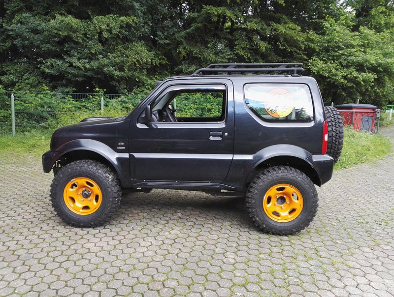 | _________________ Leicht modifizierter Jimny Diesel: OME-Fahrwerk , Excenterbuchsen, 50mm Bodylift, 235/85R16 Federal Couragia auf 7x16 Vitarafelgen, 60mm Spurverbreiterung, Kürzere Differenziale, Automatische Sperre hinten, Scheibenbremsen hinten, Stabitrenner, Stahlflexbremsleitungen etc etc etc |
