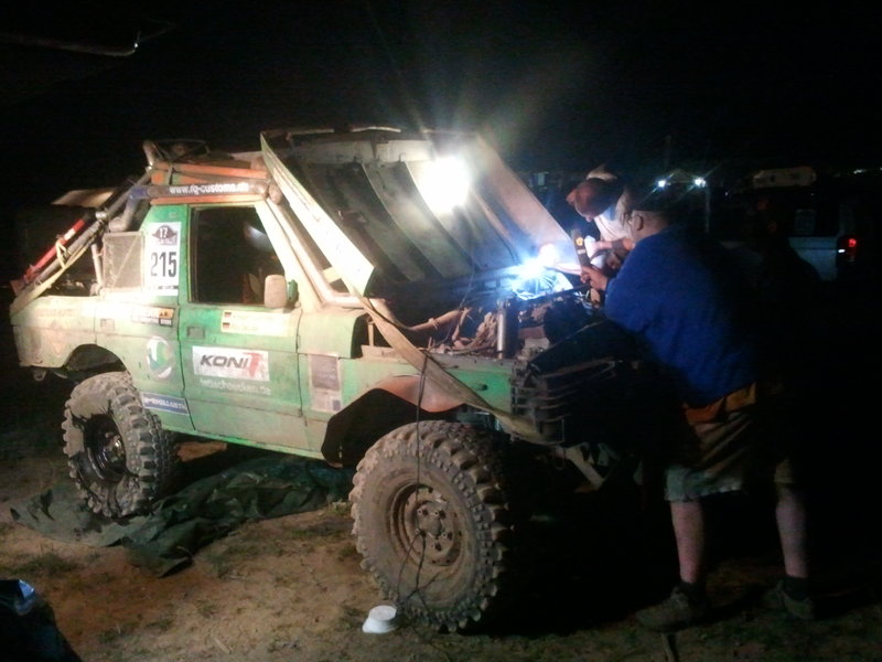 Wir frühstückten, zogen uns an und bereiteten uns auf den Start vor. Auto war OK, Luftfilter waren ausgeblasen, die Sitze durchgeweicht. Dank der zwei Strafstunden vom Vortag, lagen wir nur im vorderen mittelfeld. Glaube Platz 40 oder irgend etwas in dem Dreh. Wir starteten also eigentlich noch in akzeptabler Position.