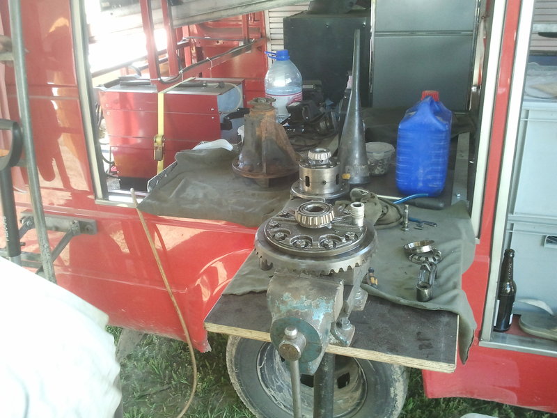 Warum unser aufgegeben hatte, wussten wir nicht. Vielleicht eine Vorschädigung aus den letzten Jahren? Wirklich Last kam im Wasserloch nicht drauf. Andererseits war es inzwischen das schwächste Glied im Strang. Alles andere war fast wie beim LKW dimensiert. ATG, VTG, Kardanwellen, Achswellen etc...Nur das Differnetial war (mit Sperre) .