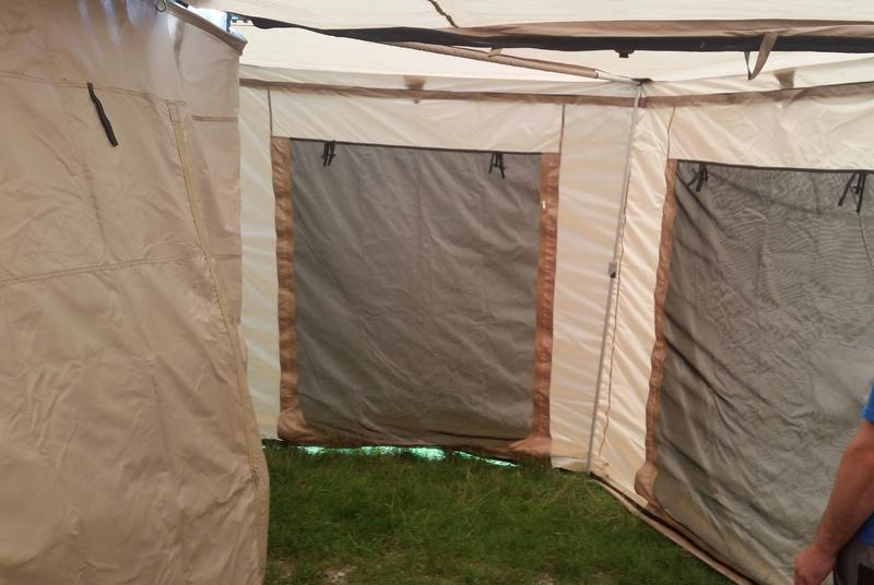Ohne Wind steht die Foxwing übrigens auch ohne Seile. Regenwasser läuft problemlos und vollständig ab. Die überbaute Fläche der Foxwing ist schon gewaltig, hilfreich bei Sonne als auch bei Regen.