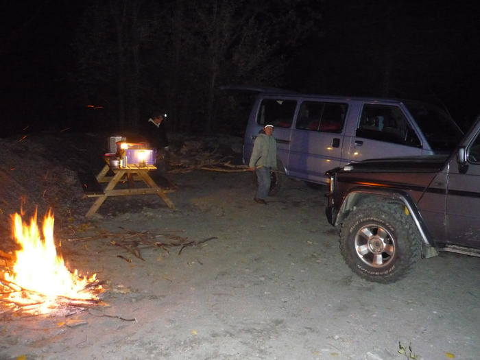 Oben an der verlassenen Skistation haben wir dann Feuerholz gesammelt und das Abendessen bereitet. Beim Lagerfeuer und nem steifen Grog haben wir dann wieder den Sternenhimmel genossen bis dann irgendwann die Penntüte rief.