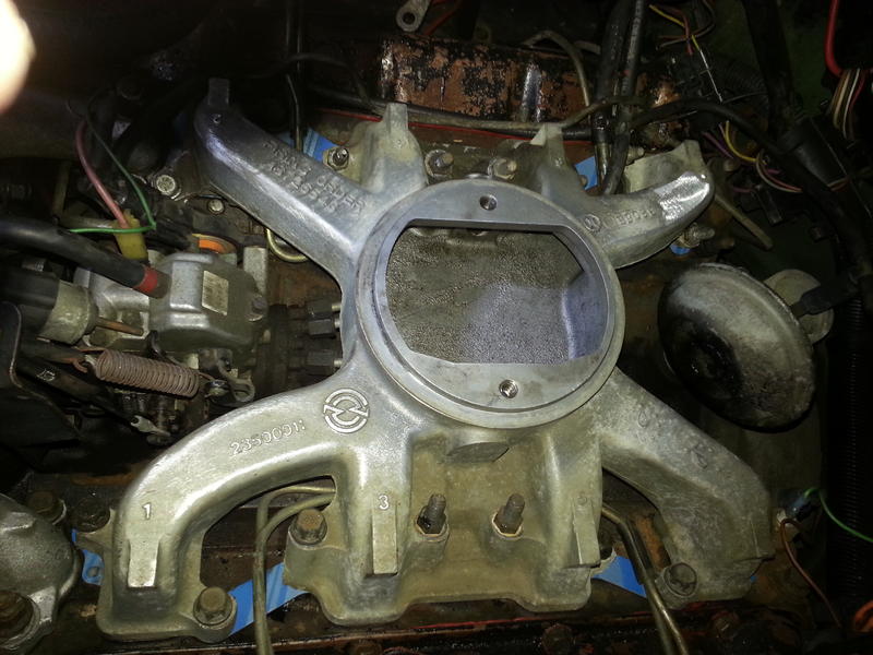 Offene Ansaugbrücke vom H1 , größerer Luftfilter , Dieselpumpe aufgeschraubt , Abgaskrümmer vom H1 größer und kein Guss Krümmer , größere Abgasanlage gerade in Arbeit . | |