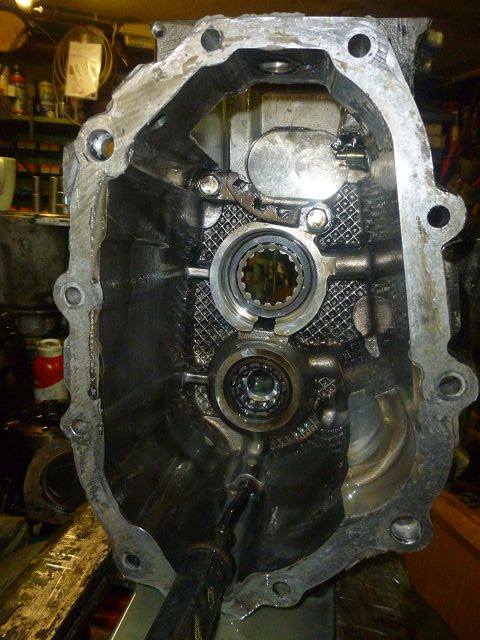 Und schon kann die Getriebeverlängerung abgenommen werden. Also wenn vorher der Schaltfinger von der Schaltwelle entfernt wurde.
