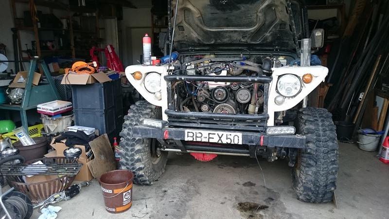 Es wurde der TD5 Motor getauscht, es kam ein anderer LLK rein und auch der Turbo ist anders: jetzt ein Hybrid. Den Luftfilter habe ich nach hinten verlegt. Zu viel Änderungen ohne einen Test. Wie immer werde ich nicht mit Allem fertig, aber der Wagen läuft wenigstens.